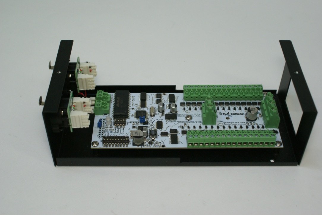 Connectors: Neutrik DMX In/Out; removable Phoenix terminal blocks for outputs